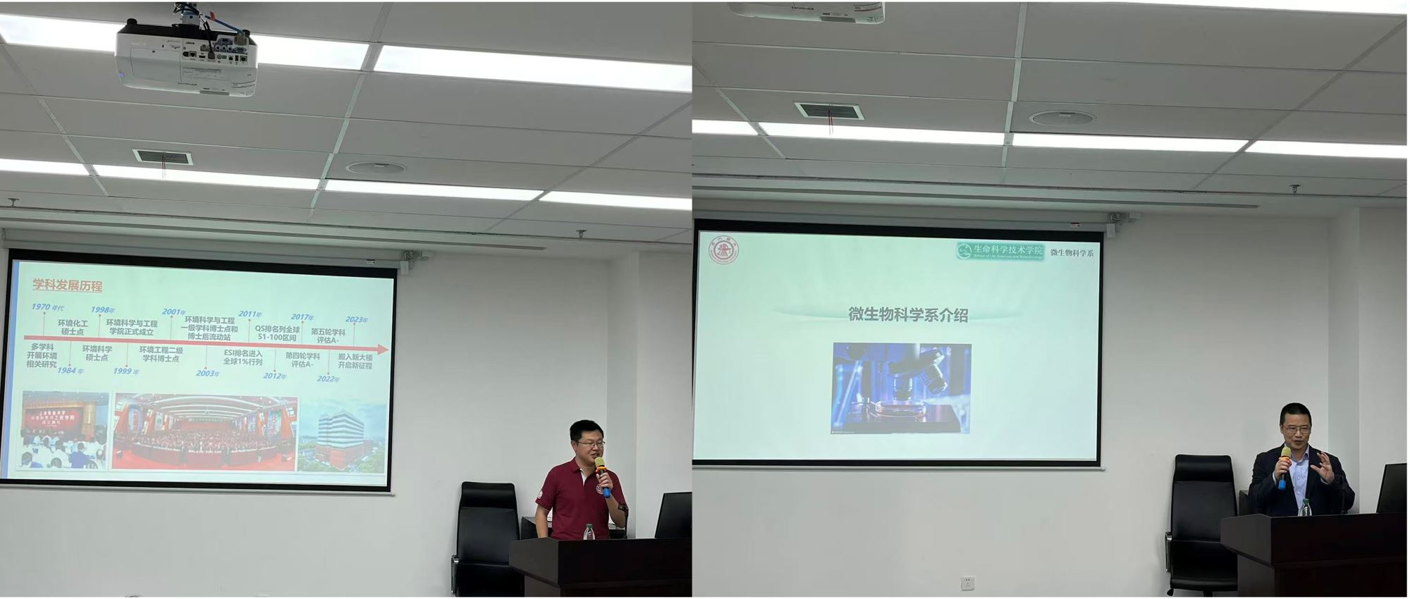 郑浩、冒巍巍分别代表两家学院致辞。郑浩指出,环境问题的解决日益依赖于多学科的协同攻关,环境科学为宏观生态修复提供目标与场景,微生物科学则从微观层面揭示其内在机理与潜力,期待两院系以此次活动为起点,建立更紧密的科研合作与人才培养机制。冒巍巍强调,要以本次活动为契机,深入开展学科交叉交流,充分了解彼此学科基础,推动未来深度合作。微生物作为地球上最庞大、最多样的资源库,在物质循环与污染降解中发挥着“核心引擎”作用,应推动微生物组学、合成生物学等前沿技术更有效地应用于环境领域,服务国家生态文明建设大局。