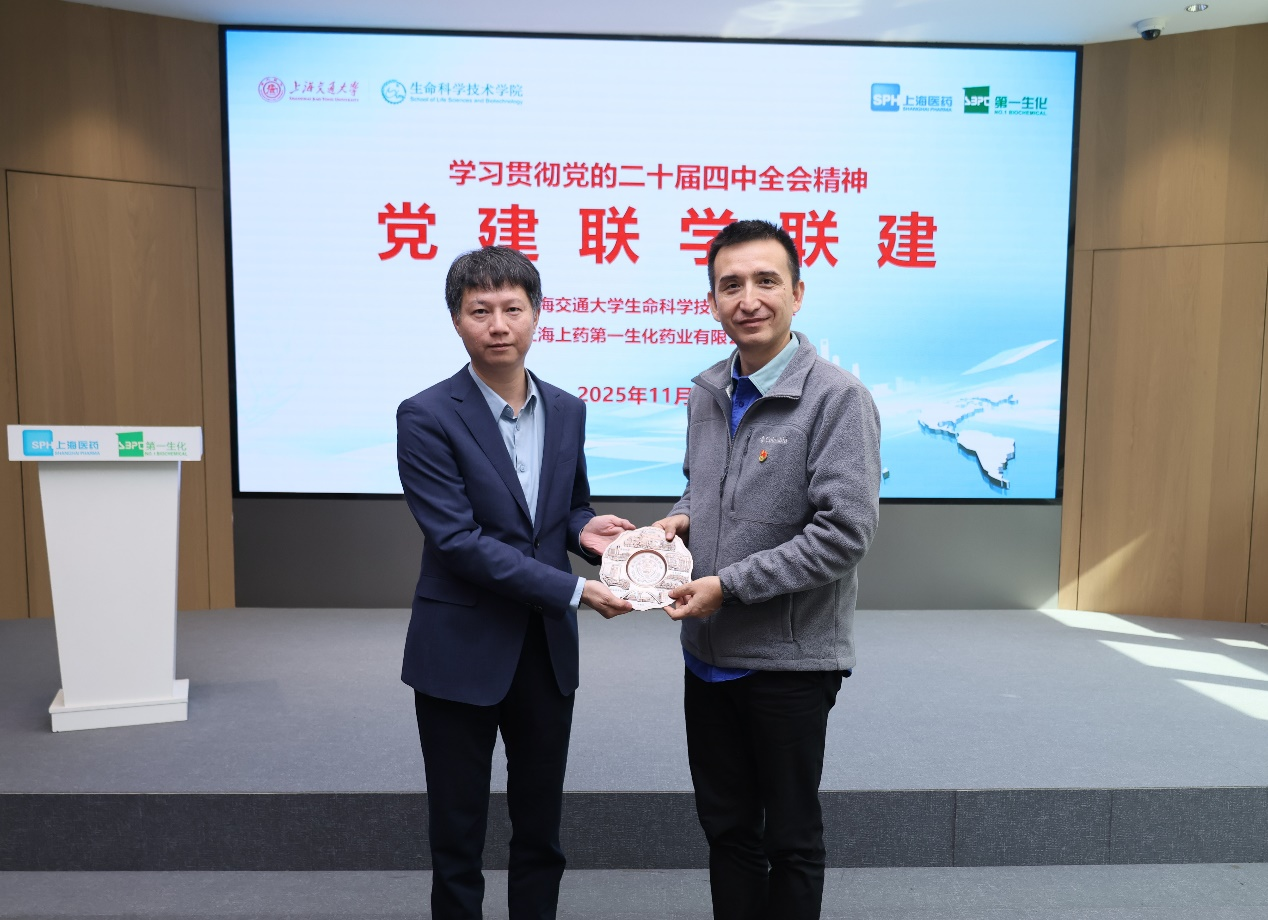 上海医药副总裁、上药第一生化党委书记、总经理艾力在交流中表示,第一生化与上海交通大学渊源深厚,合作基础扎实,期待以党建为纽带,进一步拓展双方在科研、人才培养方面的合作空间,携手助力生物医药产业能级提升。