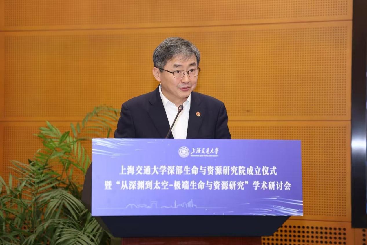 12月1日下午,上海交通大学深部生命与资源研究院成立仪式暨“从深渊到太空—极端生命与资源研究”学术研讨会在闵行校区文博楼会议中心举行。上海市科学技术委员会副局长级干部谢文澜,中国科学院院士赵国屏、翦知湣,上海尚思自然科学研究院院长鲁白、首席科学官李党生,中国极地研究中心原党委书记孙波,上海交通大学校长、中国科学院院士丁奎岭,副校长张兆国、曾小勤,医学院党委副书记吴正一,中国科学院院士、生命科学技术学院名誉院长邓子新,上海市科委、自然杂志、中国极地研究中心以及兄弟单位领导和专家,生命科学技术学院及学校相关二级单位、附属医院相关负责人和师生代表参会。成立仪式由张兆国主持。